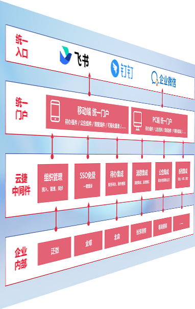对协作平台提供支持服务,,支持企业应用与协作平台对接,,包含组织同步、、、、消息集成、、、待办集成等。。支持目前主流的协作平台:钉钉、、企微和飞书。。。
